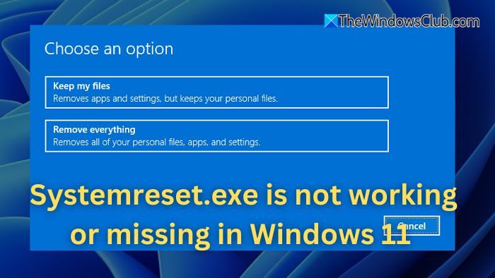 Si SystemReset.exe no funciona o falta en Windows 11/10, siga estos pasos para solucionar el problema: